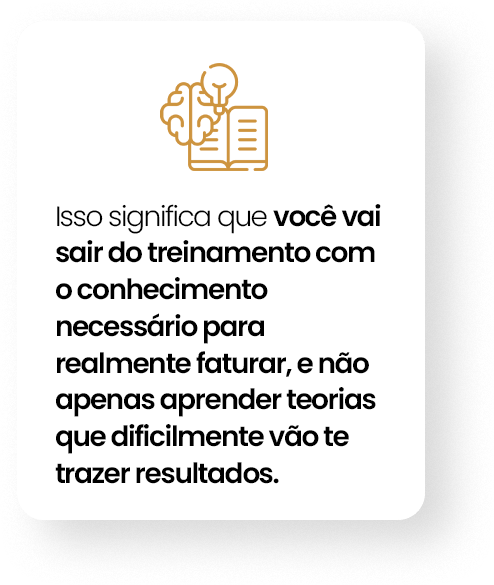 Aqui, não há espaço para teorias vazias ou informações irrelevantes. Cada módulo tem um objetivo claro: fazer você vender mais e melhor.