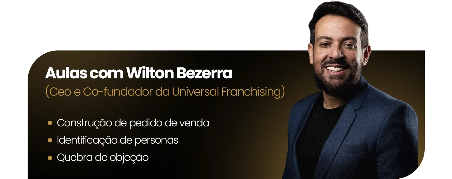 Não importa se você já trabalha com vendas ou se está começando do zero. Nesse treinamento eu vou te ensinar o passo a passo para ganhar muito dinheiro vendendo as melhores franquias do mercado.
