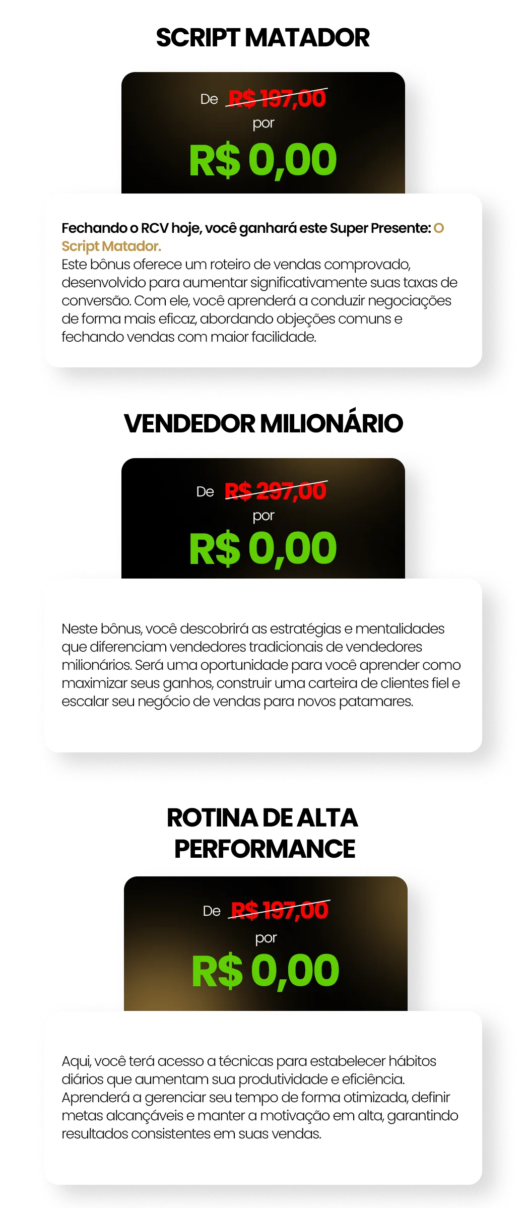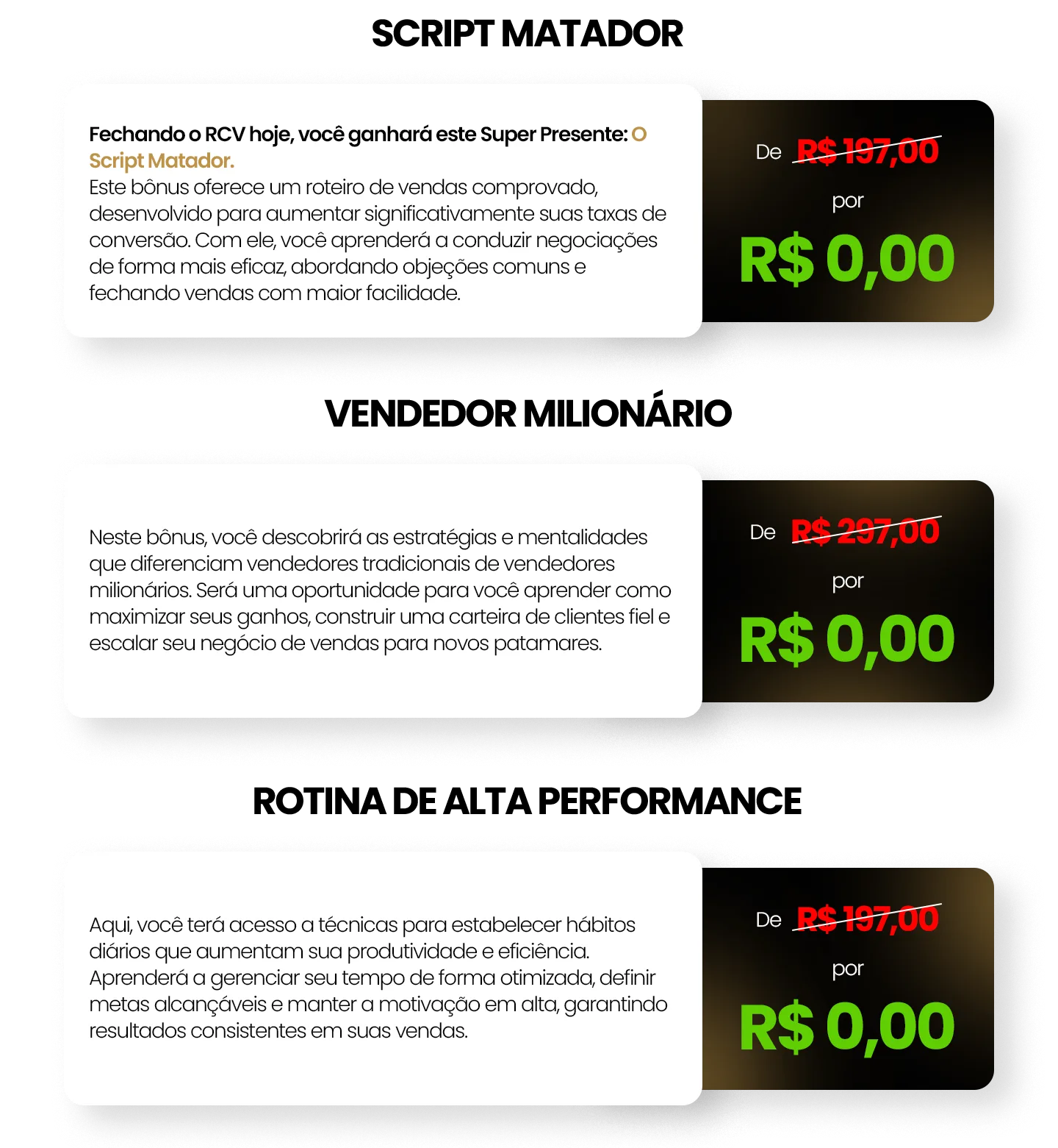 Ao adquirir o Treinamento "Rico com Vendas" (RCV) hoje, você não estará apenas recebendo um treinamento completo sobre vendas de franquias. Nós preparamos uma oferta especial para você, com 3 bônus exclusivos, que vão potencializar ainda mais os seus resultados!